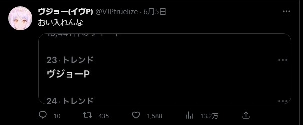 「ヴジョー」でトップツイート検索してみた