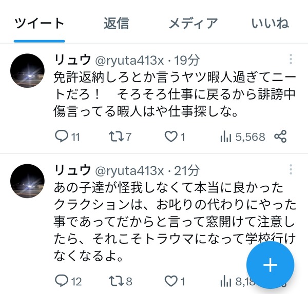 【悲報】威嚇ドライバーさん、なんJふたばTwitter民と徹底抗戦