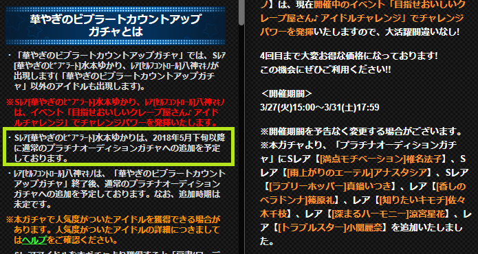 ・[華やぎのビブラート]水本ゆかりは恒常追加予定