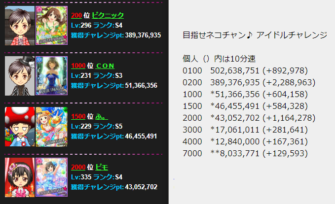 とりあえずボーダー観測所24目指せネコチャン♪ アイドルチャレンジ 最終結果