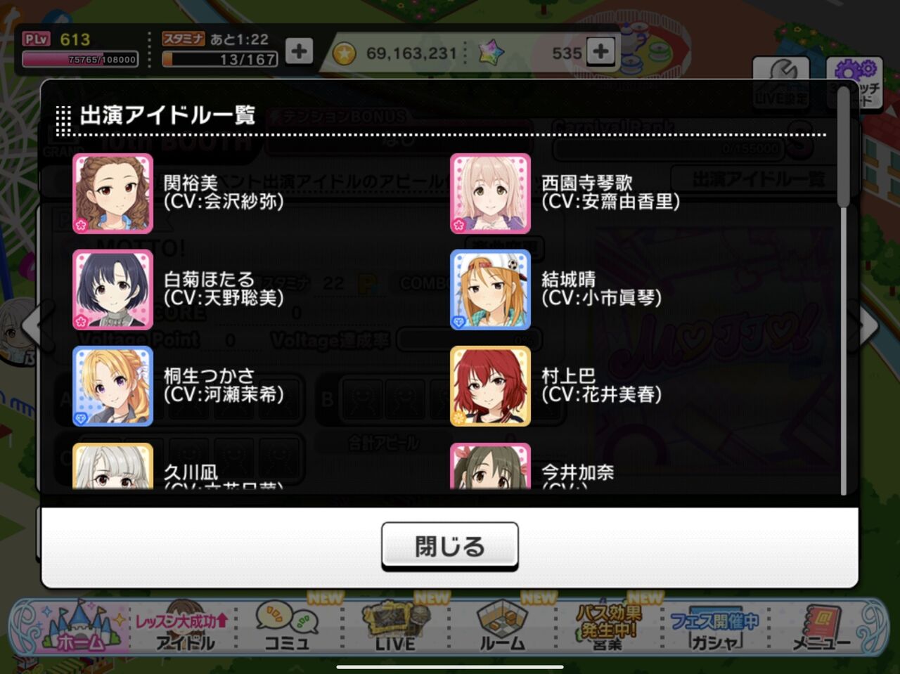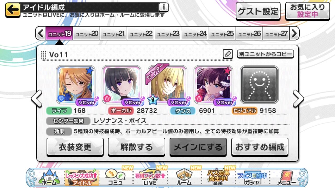 属性ブース2つで残りはボーカル3つダンス1つビジュアル2つ