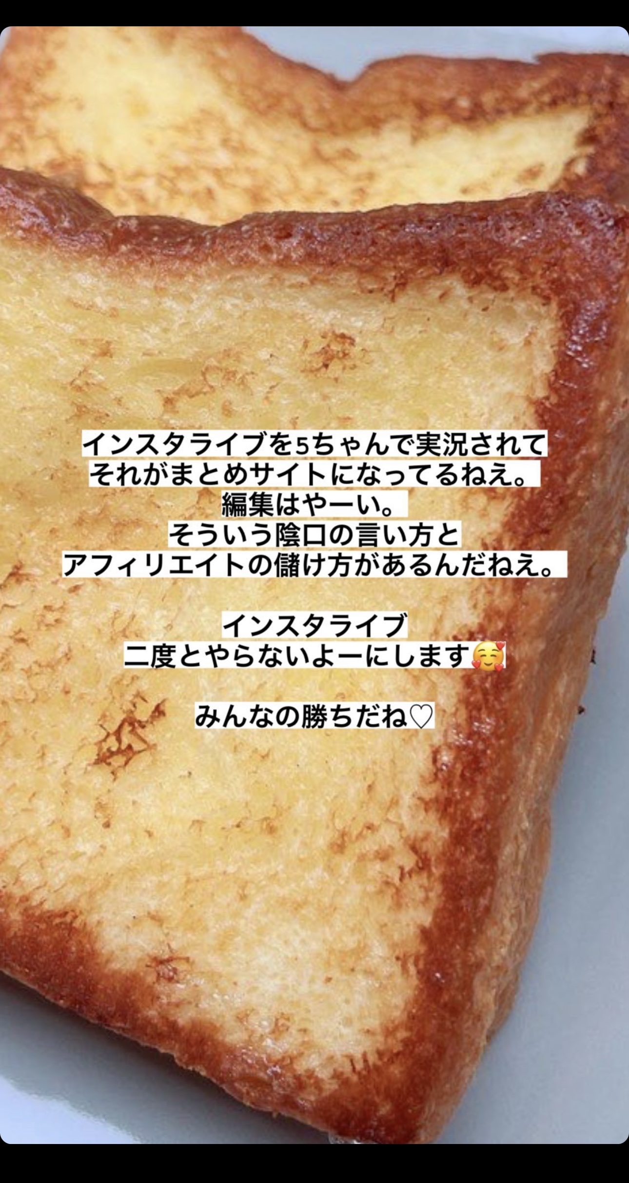 ワイは見れなかったけど今日は朝五時からインスタライブしてたらしい