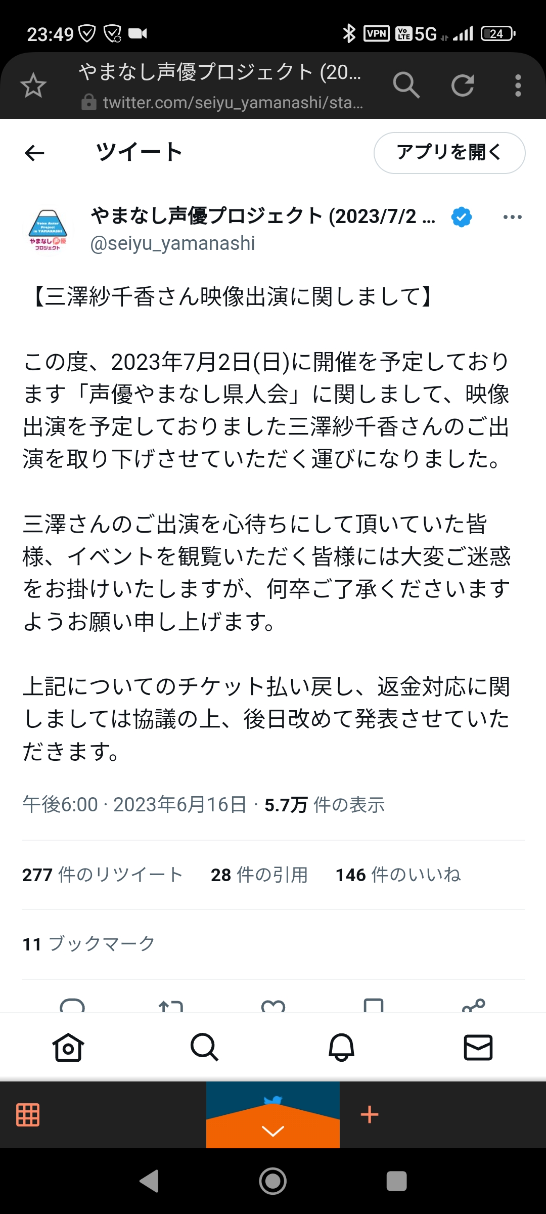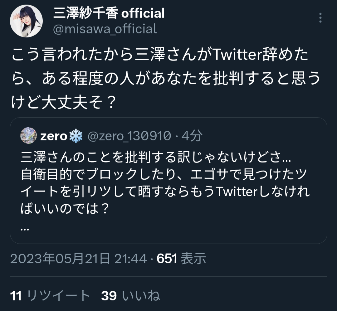 引用元:人気美人女性声優の三澤紗千香さん、イベントへの参加を取り下げられてしまう
