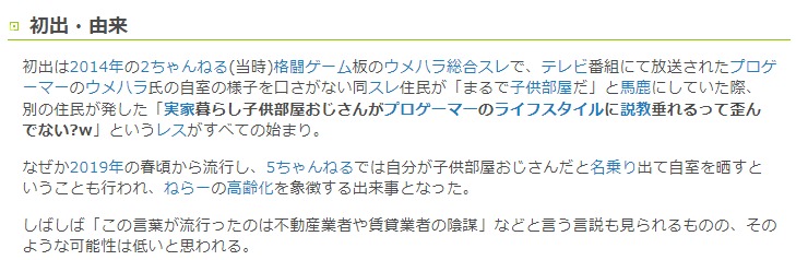 子供部屋おじさんだと働いてる奴も入るから広義すぎるよな