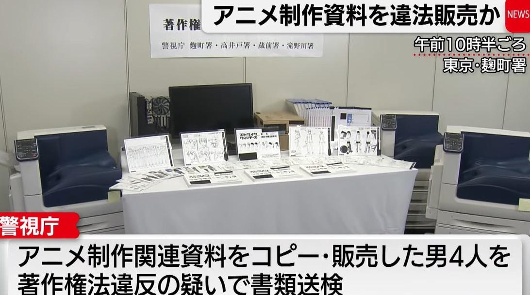 人気アニメの制作に関わる内部資料を無許可で複製し、著作権を侵害したとして、警視庁は20代の男性ら4人を書類送検しました。