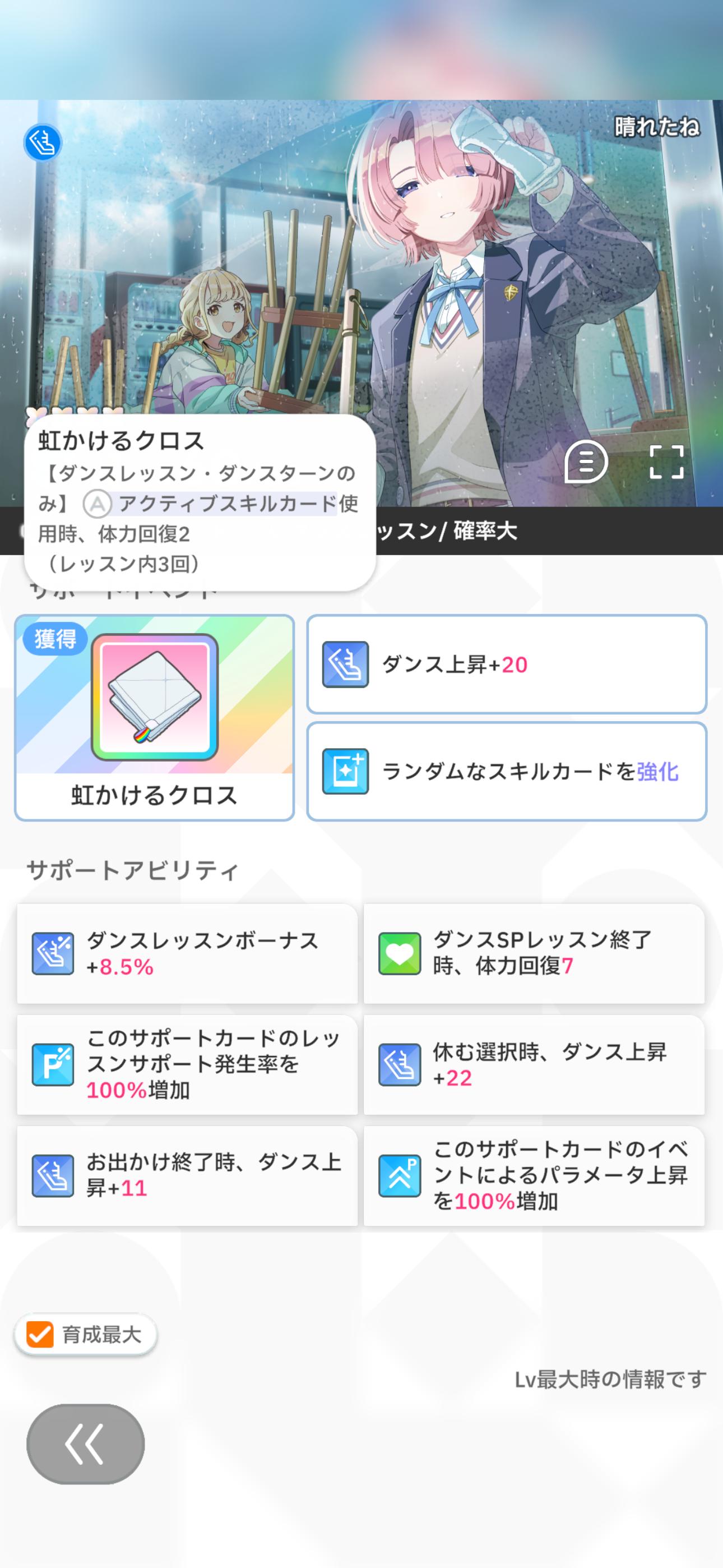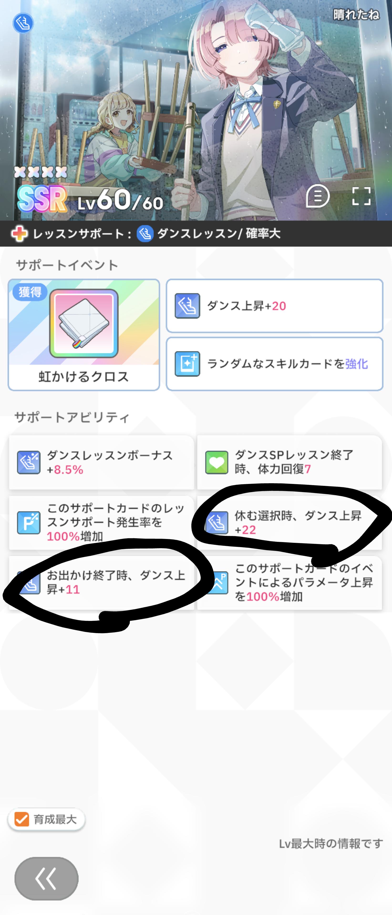 休み育成するにしてもSPレッスン回復がむしろ邪魔になってくるし、総じて微妙。