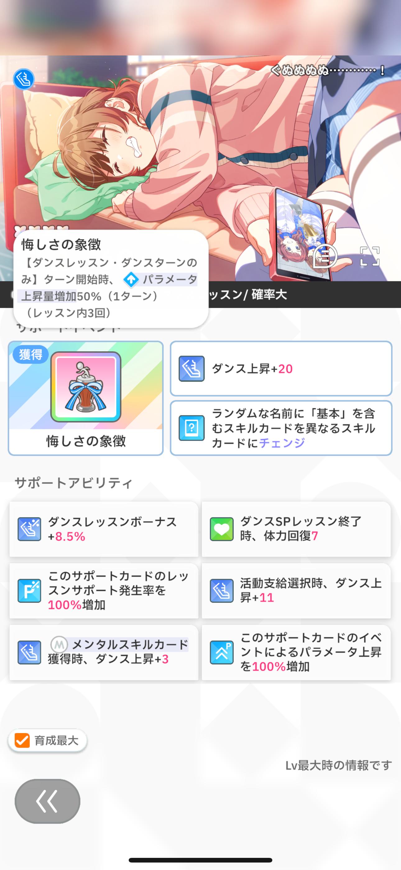 でも通常レッスンばかりじゃ逆に弱そうだし死にアビとアイテムになってうーんって感じ