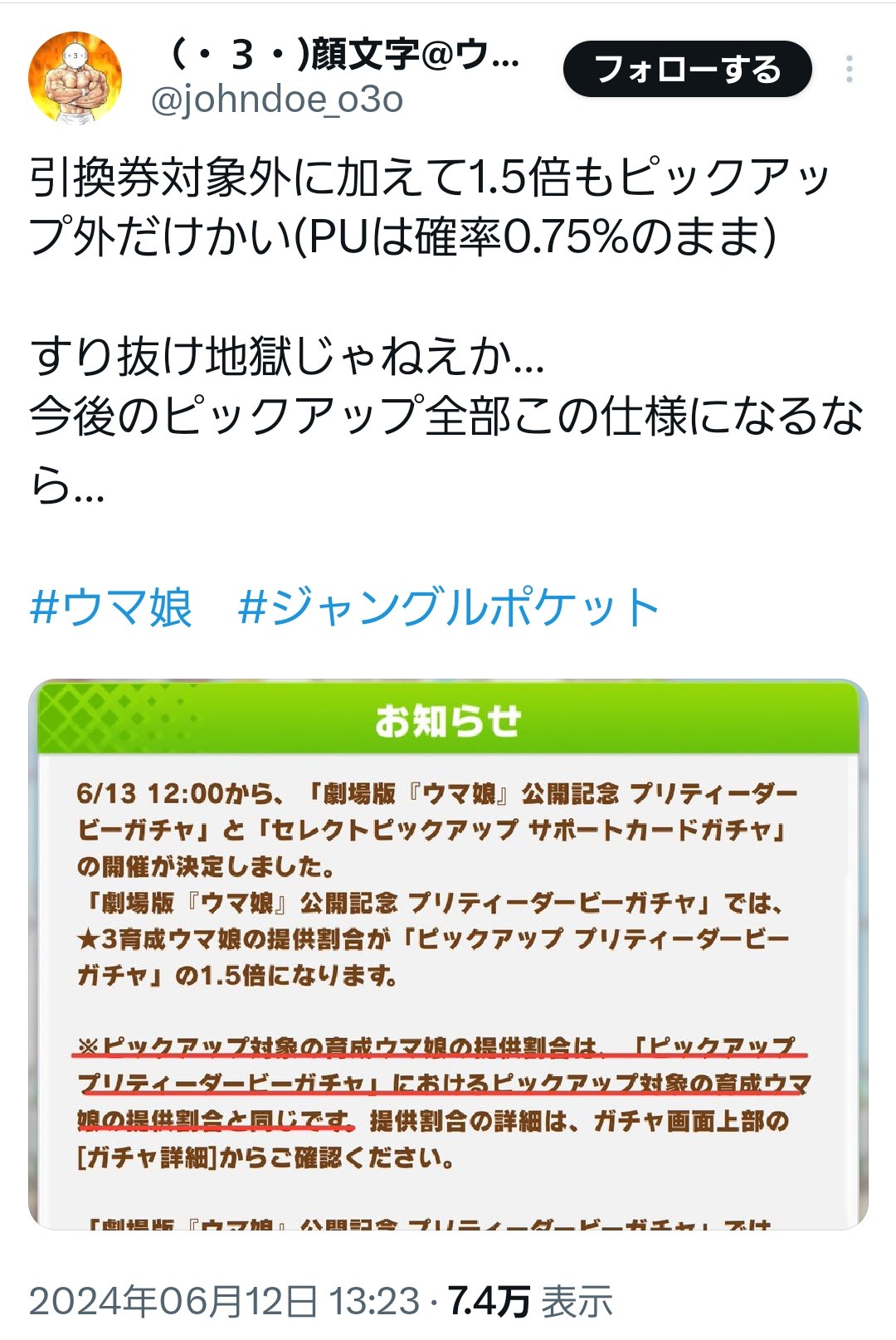 ウマってピックアップ終わったら恒常化するんしょ? どんだけぬるま湯だったんすか?
