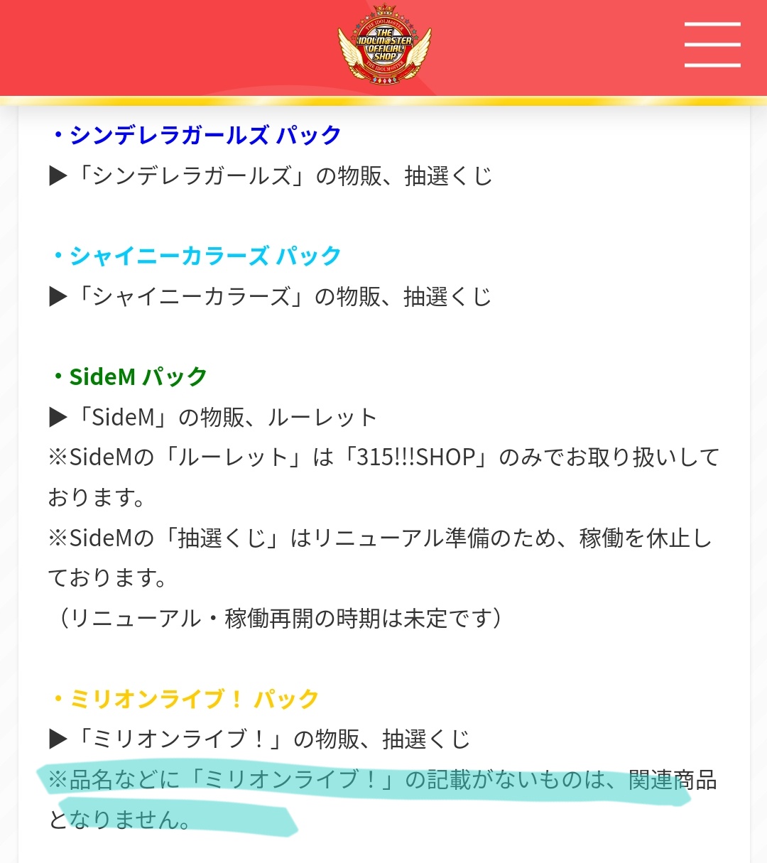 ミリオンだけわざわざ※で条件書いてるのはミリオン名義じゃないASグッズは対象外っていう念押し?