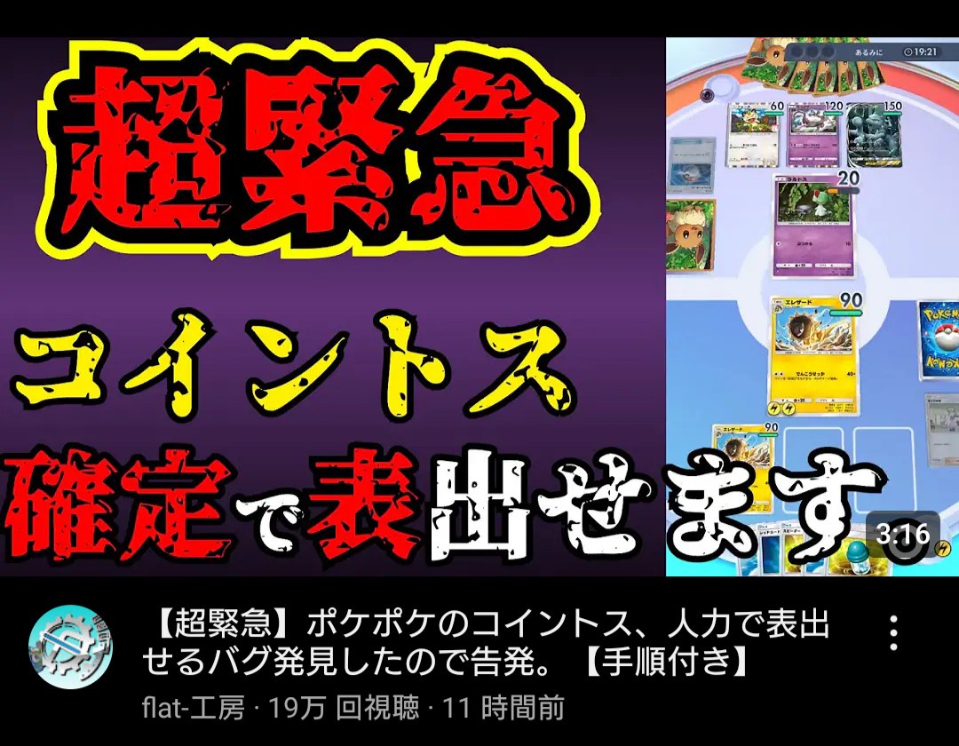 【超緊急】ポケポケのコイントス、人力で表出せるバグ発見したので告発。【手順付き】 より 拡散希望です。本当にヤバいバグ見つけました。このままだとポケポケ終わります。