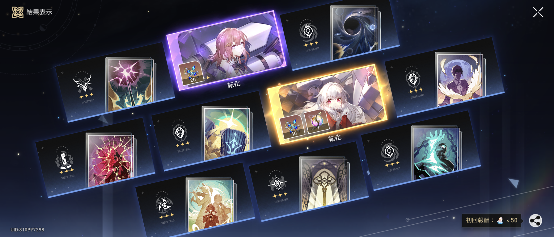 マダムヘルタと霊砂ひいて、白露と姫子をゲットしたぜ