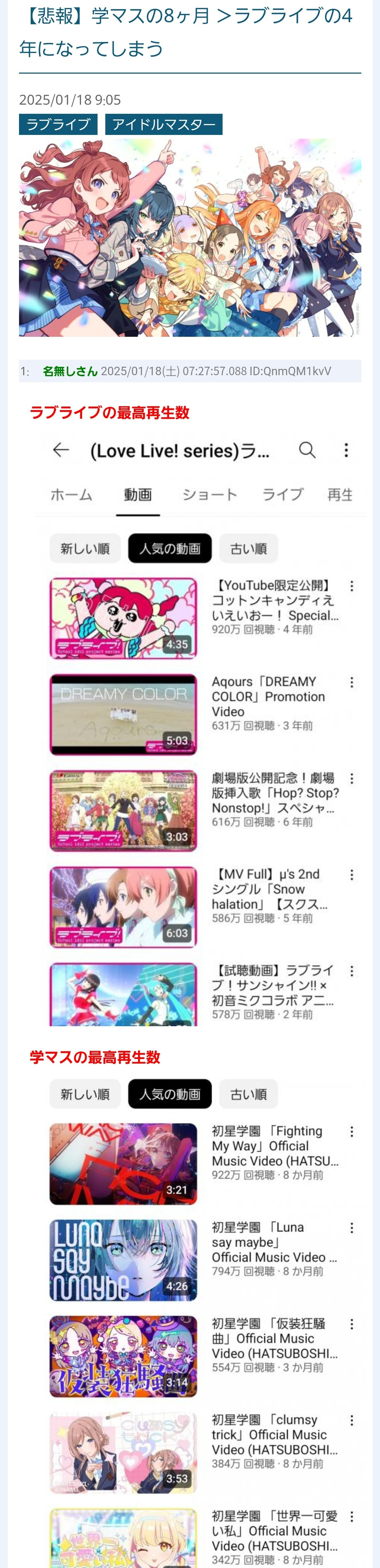 操作されたまやかしの数字なんかより、ラブライブの方がすごいです
