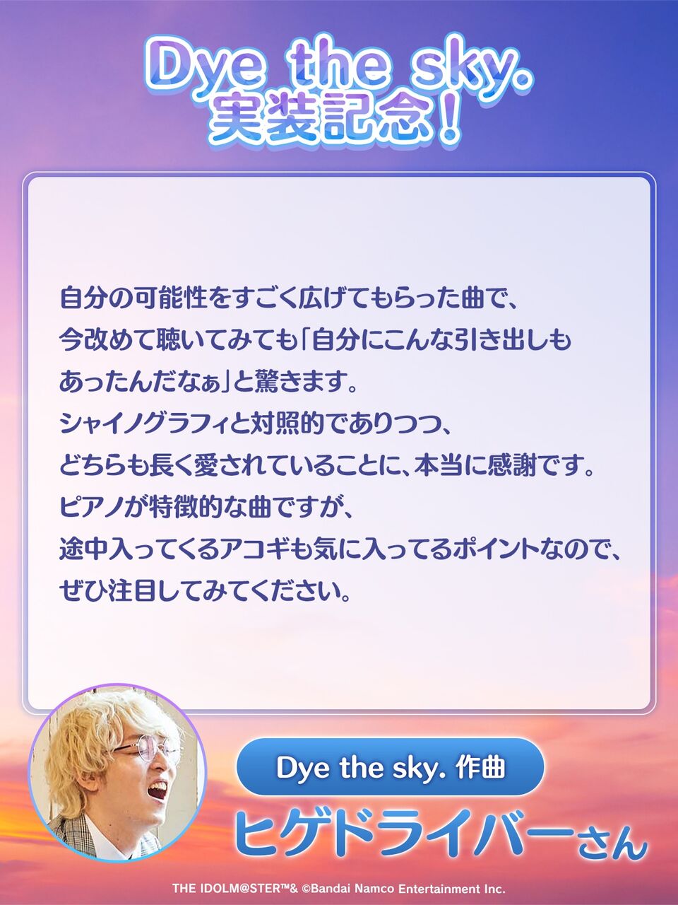周年曲シャイノグラフィと同く、作詞家・作曲家のコメントが来てる