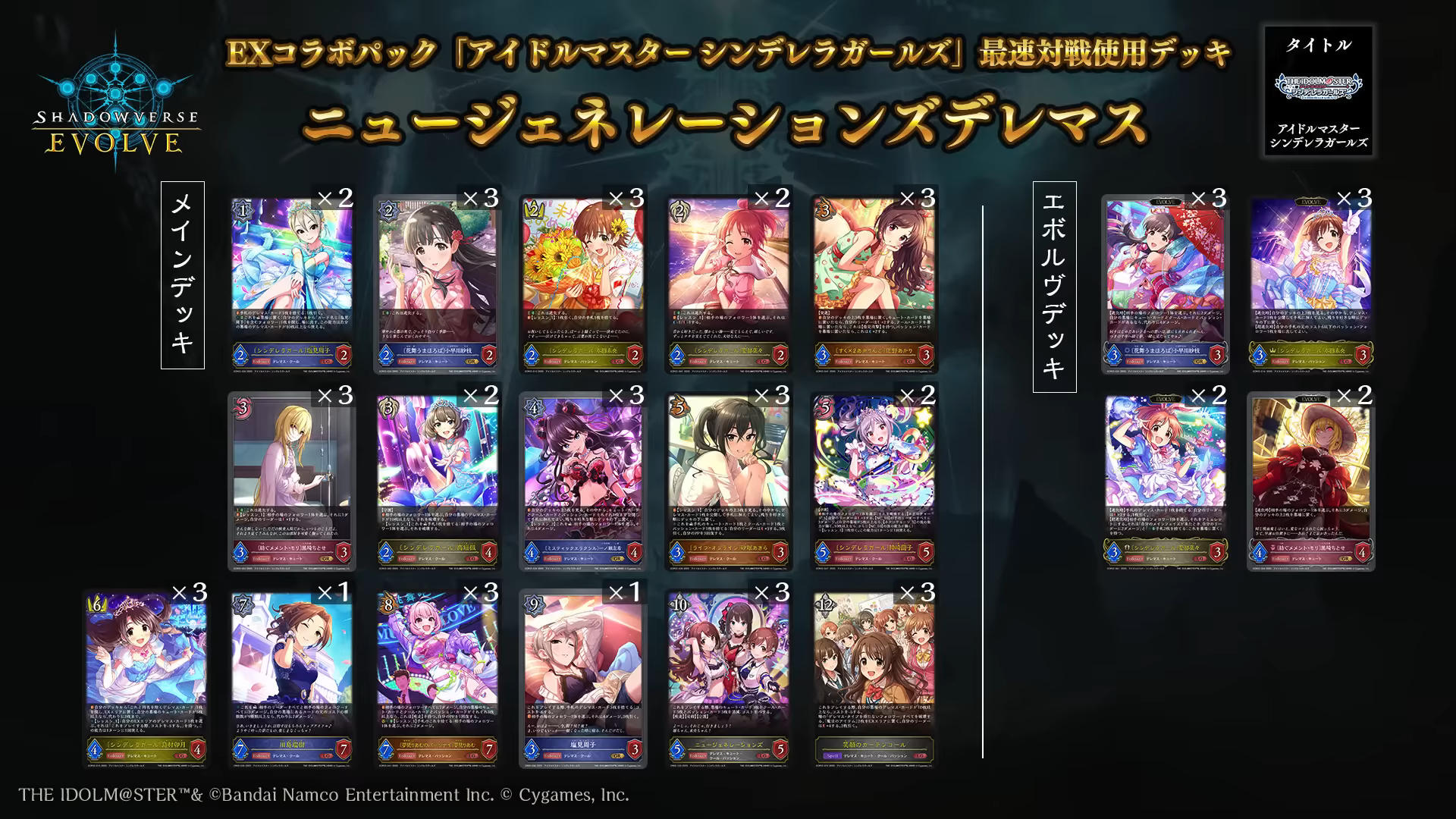 EXコラボパック「アイドルマスター シンデレラガールズ」商品CMを公開しました。#デレマス のアイドル達が再び #シャドウバースエボルヴ に登場します!
