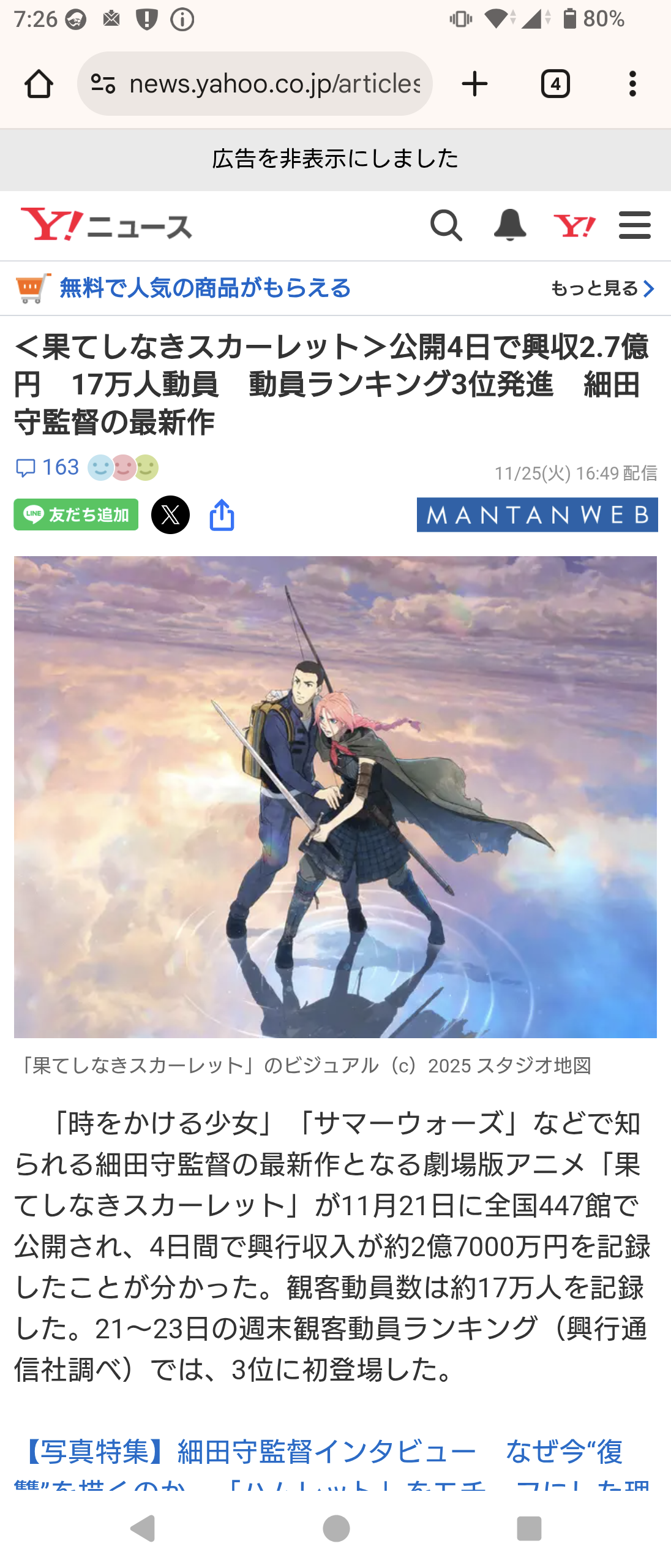 引用元:【大悲報】『果てしなきスカーレット』公開2週目でトップ10圏外、3日間で2億円止まりの大惨敗
