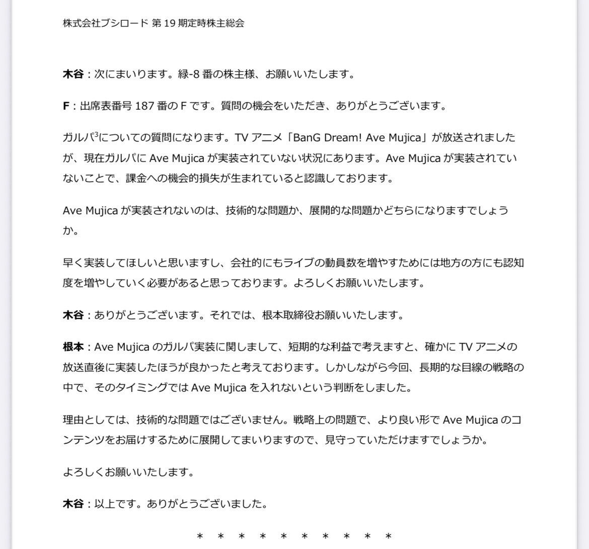 いつかの株主総会でムジカは然るべきタイミングでガルパに実装するとか言ってなかったっけ?