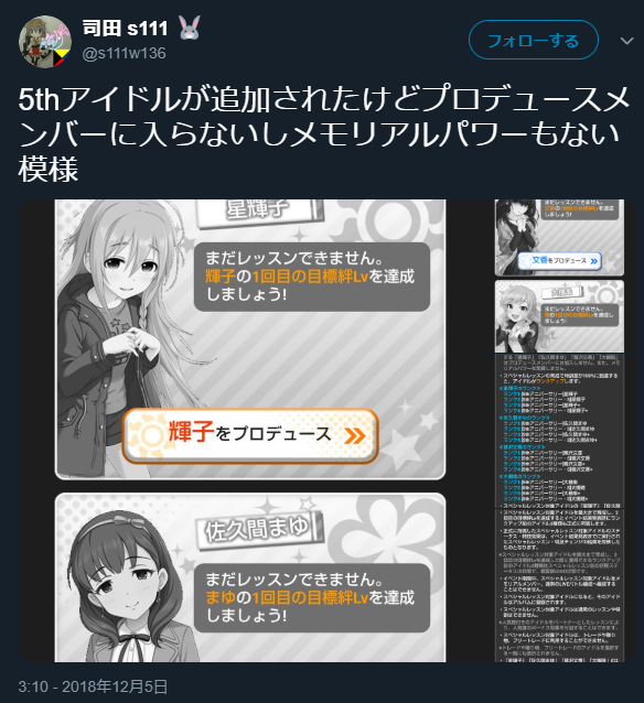 アイドルプロデュース the 8th Anniversary【1000位】 2019年12月09日 カテゴリ:アイドルプロデュース 【アイドルプロデュース the 8th Anniversary【1000位】】の続きを読む