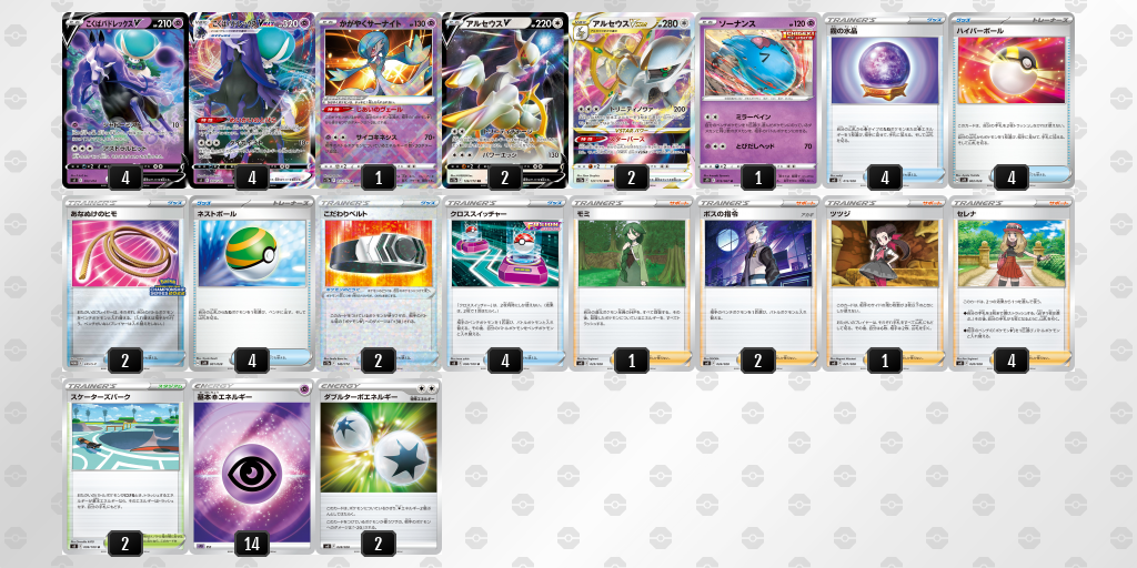 【ポケカ】サーナイトex+こくばバドレックス+アルセウスVSTAR 構築 デッキレシピ 2023年01月17日 カテゴリ:ポケモンカード 【【ポケカ】サーナイトex+こくばバドレックス+アルセウスVSTAR 構築 デッキレシピ】の続きを読む